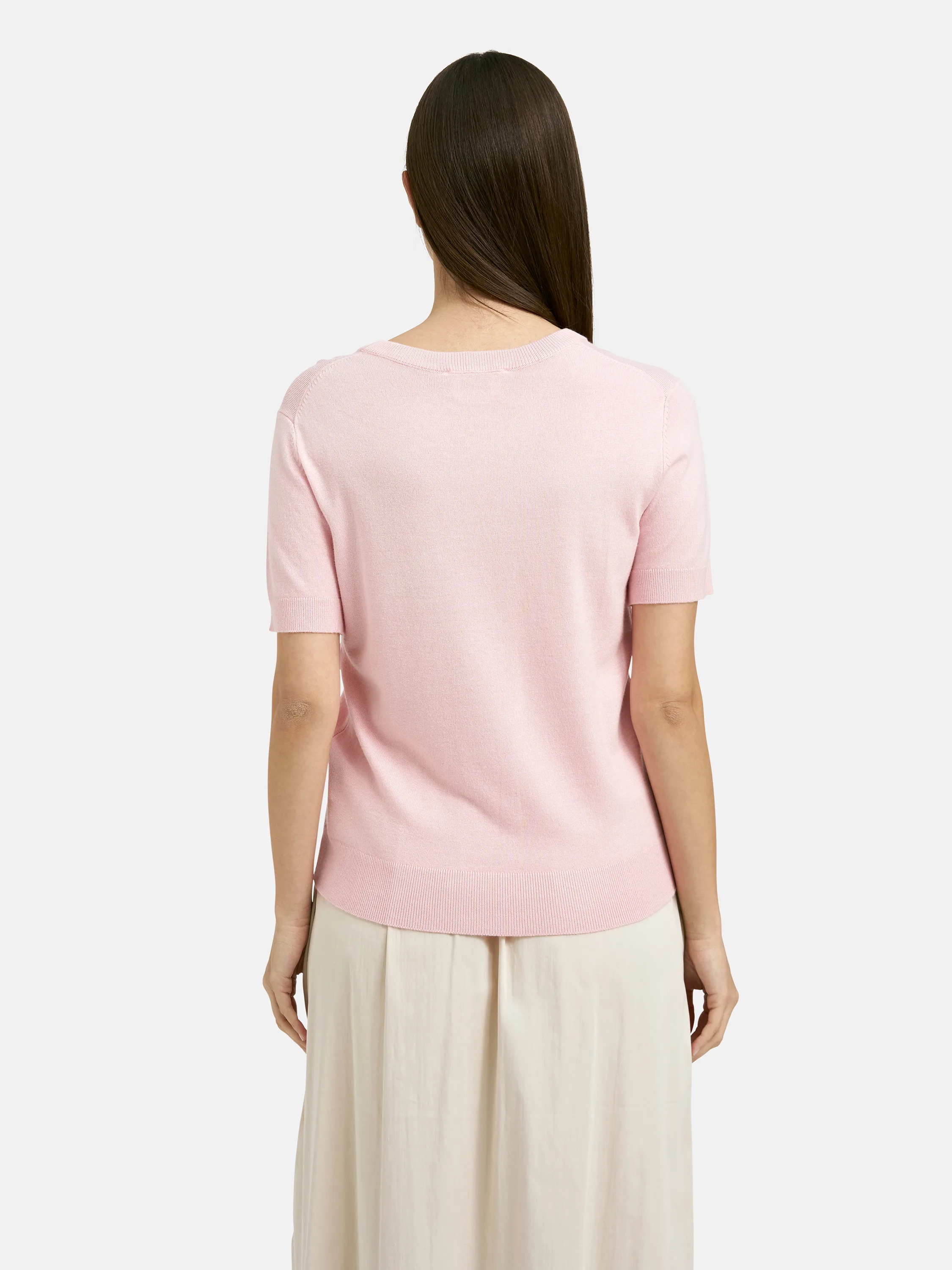 Für alle, die Leichtigkeit lieben! Dieser rosafarbene Kurzarmpullover überzeugt durch sein besonders luftig leichtes Feinstrickgewebe und eine dezente, zeitlose Optik. Er eignet sich perfekt für wärmere Tage oder als feine Schicht unter einer Jacke oder einem Blazer. Das klare Design wirkt modern und unkompliziert zugleich – einfach perfekt für verschiedenste Anlässe. Ein vielseitiges Essential, das Ihre Garderobe stilvoll ergänzt!