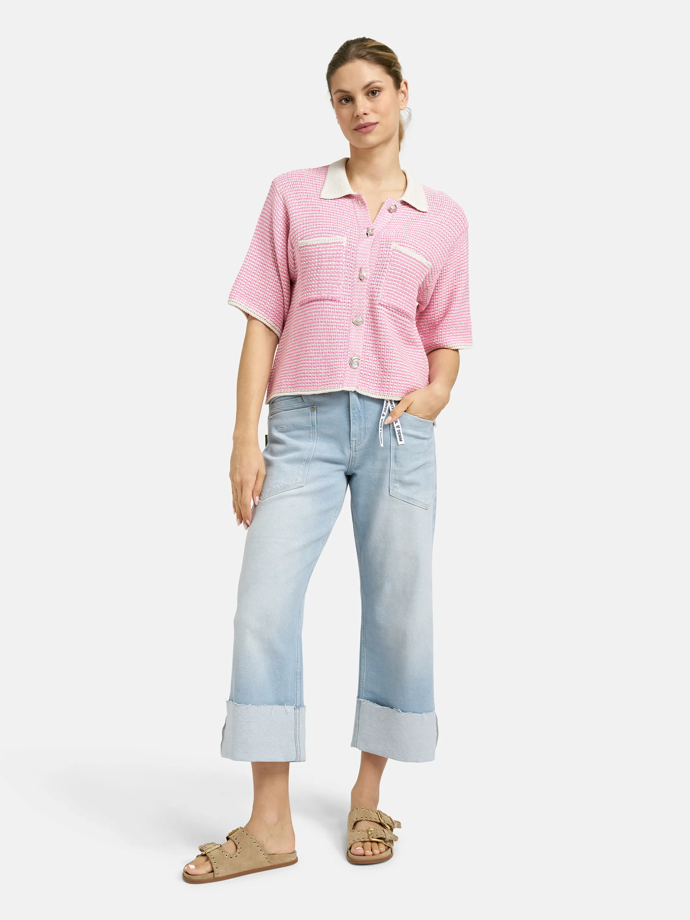 Diese Jeans mit geräumigen Taschen und umgeschlagenem Beinende bringt frischen Wind in Ihre Denim-Sammlung. Sie ist modern und wunderbar vielseitig. Tragen Sie sie mit einem leichten Strickpullover und Loafern für einen entspannten Chic oder mit Top und Sandalen für sommerliche Vibes. Auch mit Sneakers und Lederjacke entsteht ein cooler Look. Eine Jeans, die Trendgefühl und Alltagstauglichkeit perfekt vereint!