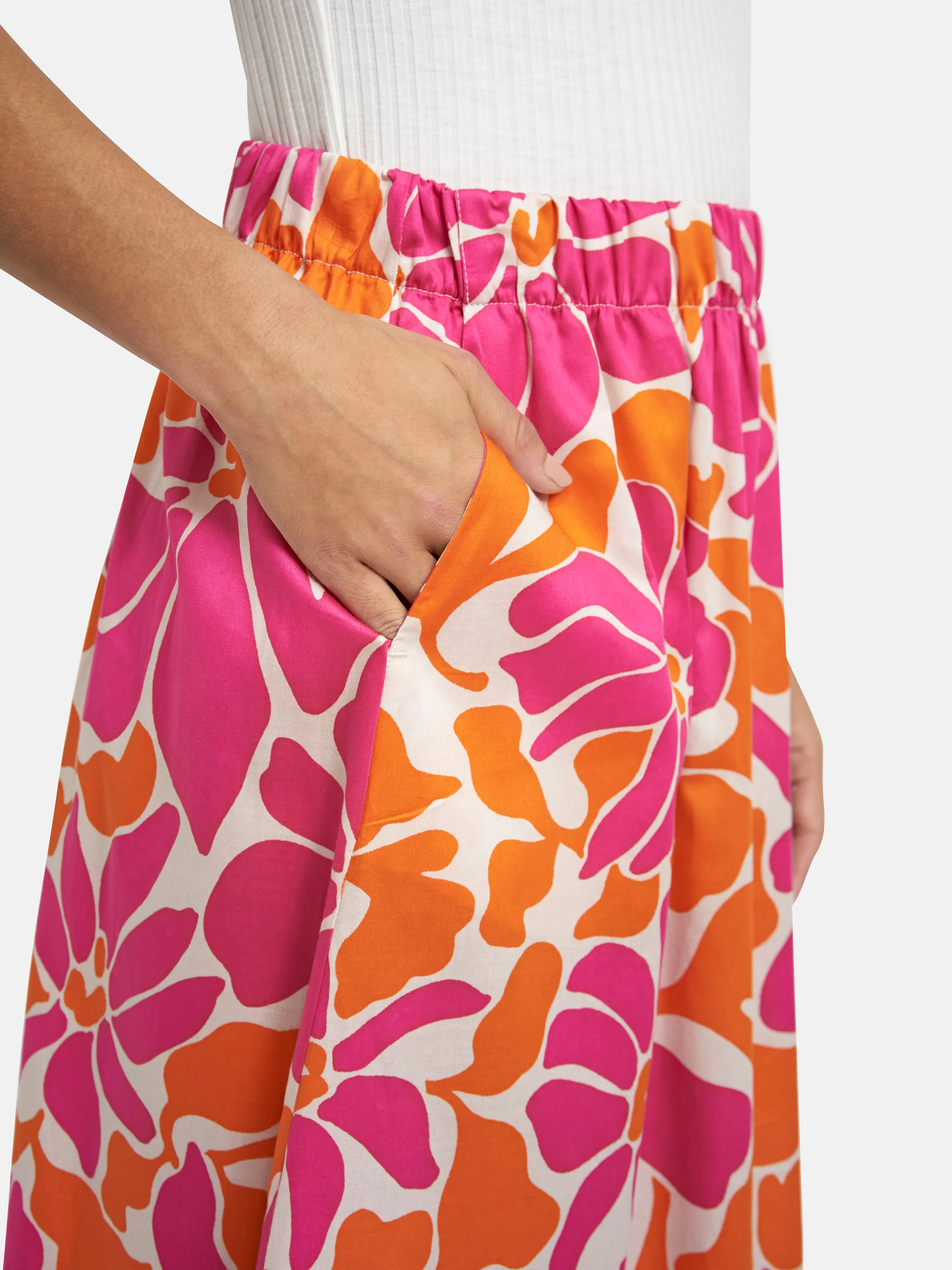 Farben, die Laune machen! Dieser Rock begeistert mit seinem farbenfrohen Muster und charmanten, funktionalen Details wie den zwei seitlichen Einschubtaschen. Kombinieren Sie ihn mit schlichten Basics für einen harmonischen Look oder greifen Sie eine Farbe aus dem Muster auf, um gezielt Highlights zu setzen. Ob mit Sneakers, Sandalen oder Loafers – der Rock ist ein Trendpiece, das Farbe bekennt und Freude macht!