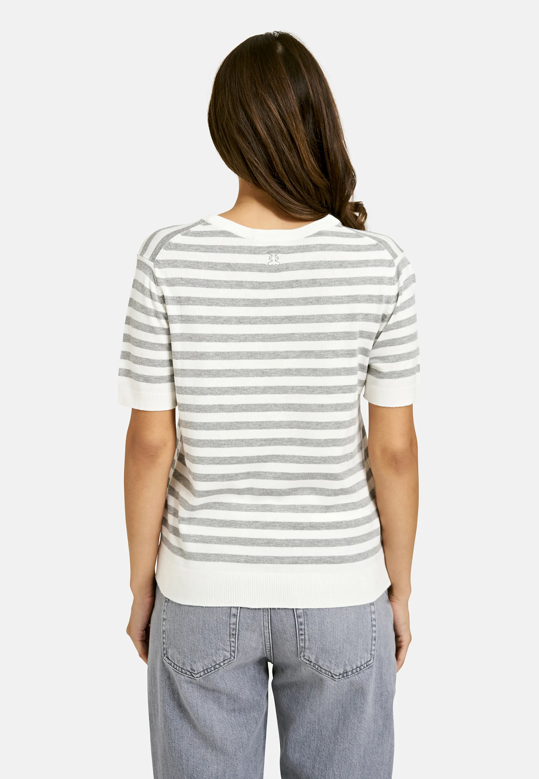 Für alle, die Leichtigkeit lieben! Dieser gestreifte Kurzarmpullover überzeugt durch sein besonders luftig leichtes Feinstrickgewebe und eine dezente, zeitlose Optik. Er eignet sich perfekt für wärmere Tage oder als feine Schicht unter einer Jacke oder einem Blazer. Das klare Design wirkt modern und unkompliziert zugleich – einfach perfekt für verschiedenste Anlässe. Ein vielseitiges Essential, das Ihre Garderobe stilvoll ergänzt!
